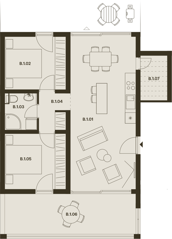 | B.1.06 | Balkon | 19,2 |