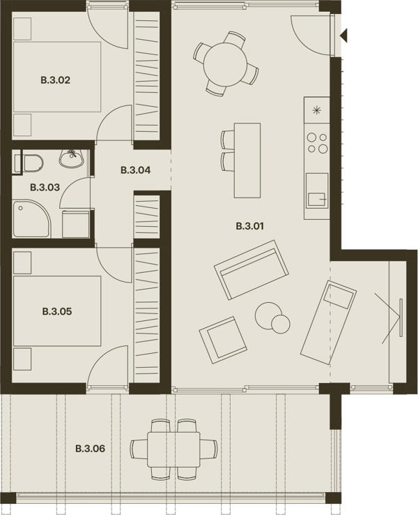 | B.3.01 | Dnevni boravak i kuhinja | 35,9 |