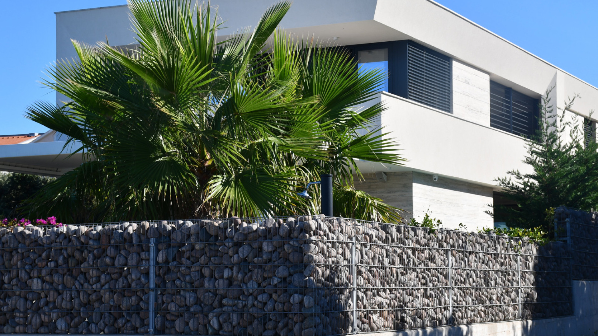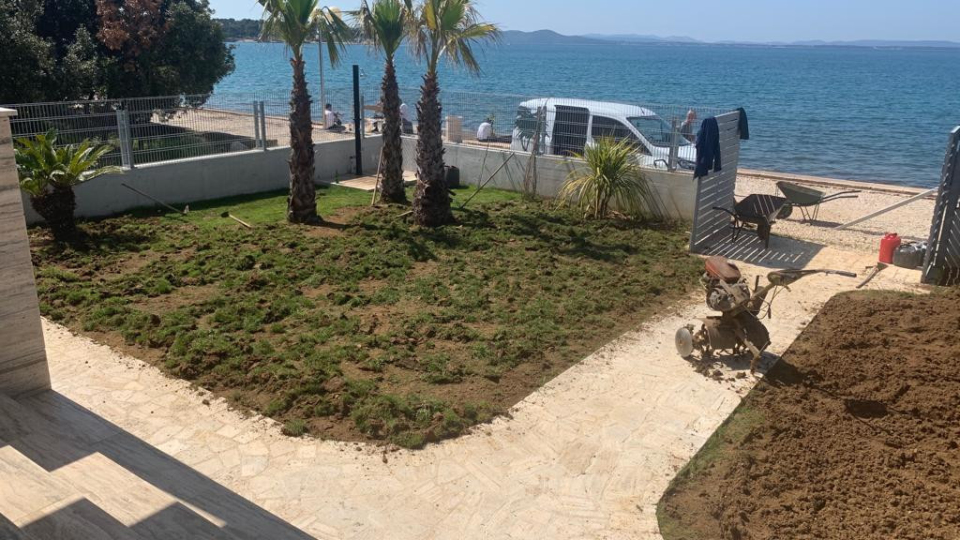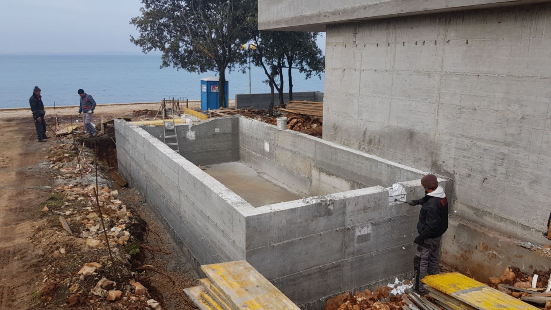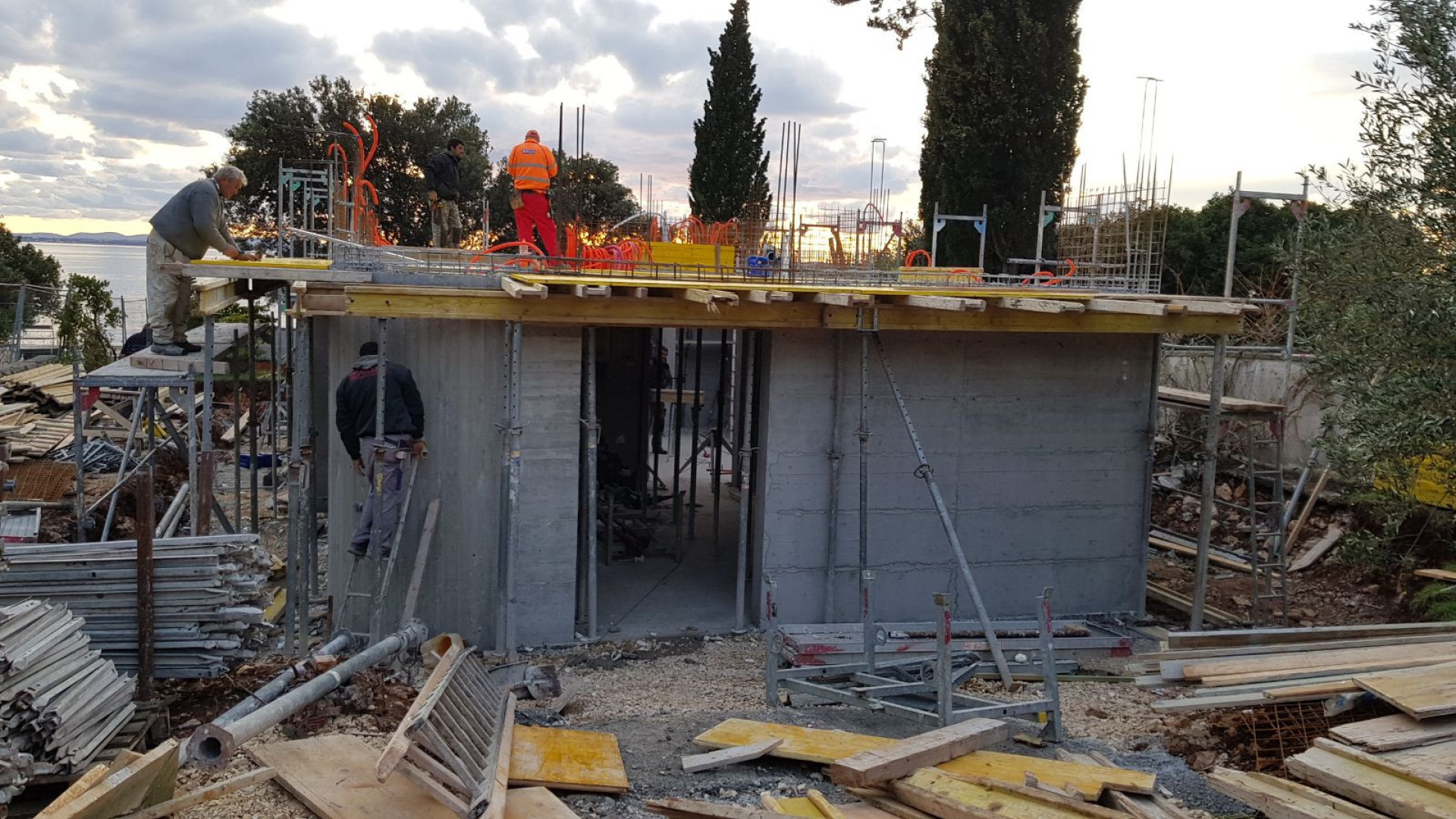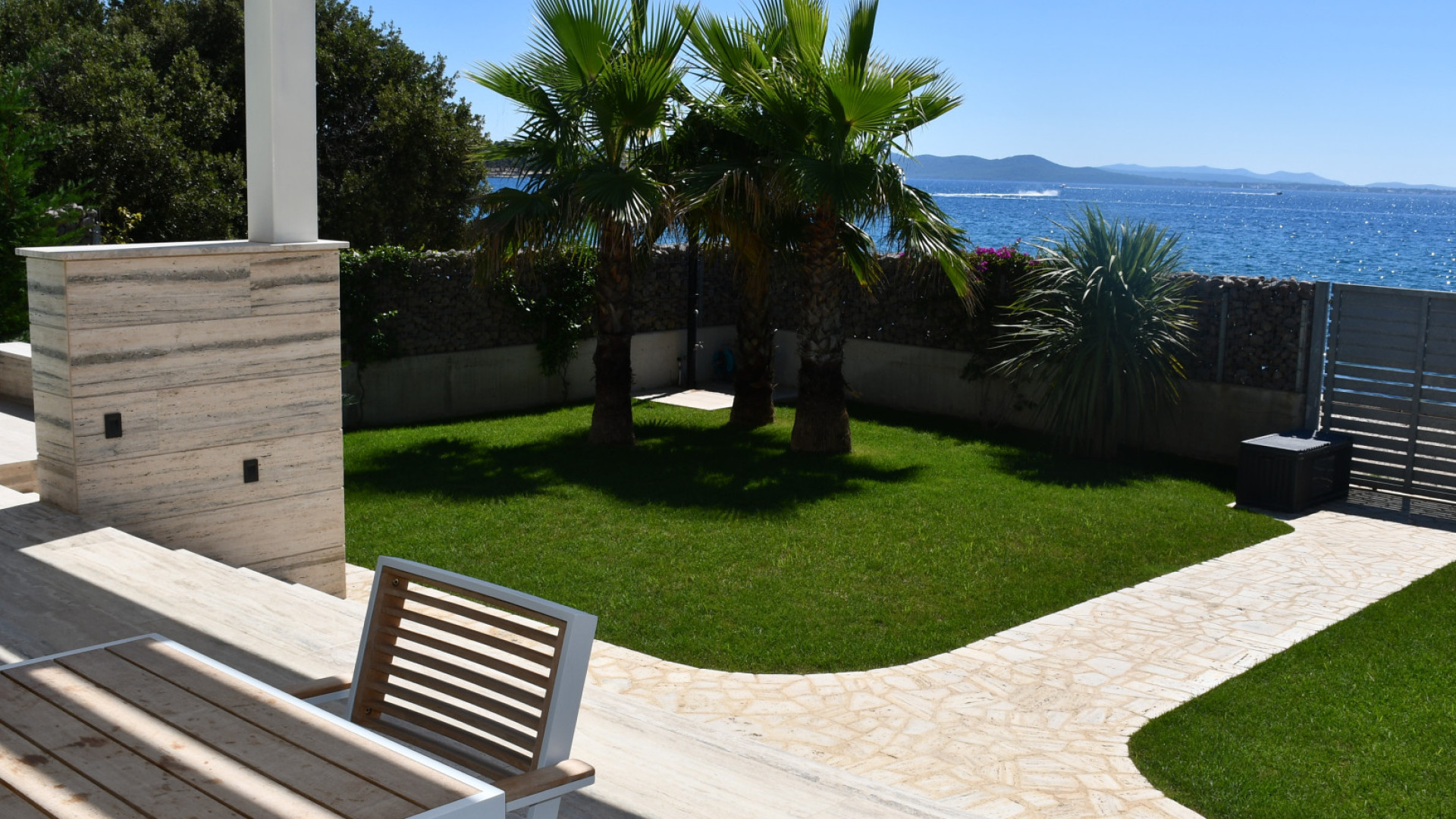 Ova luksuzna vila izgrađena je na zemljištu u prvom redu do mora, na mjestu gdje je nekada stajala stara kuća. Fasada je u velikom dijelu obložena traveritinom, što joj daje poseban i profinjen izgled. Zahvaljujući dugogodišnjem iskustvu investitora, vila nije samo estetski dojmljiva, već i funkcionalno osmišljena za ugodan život.